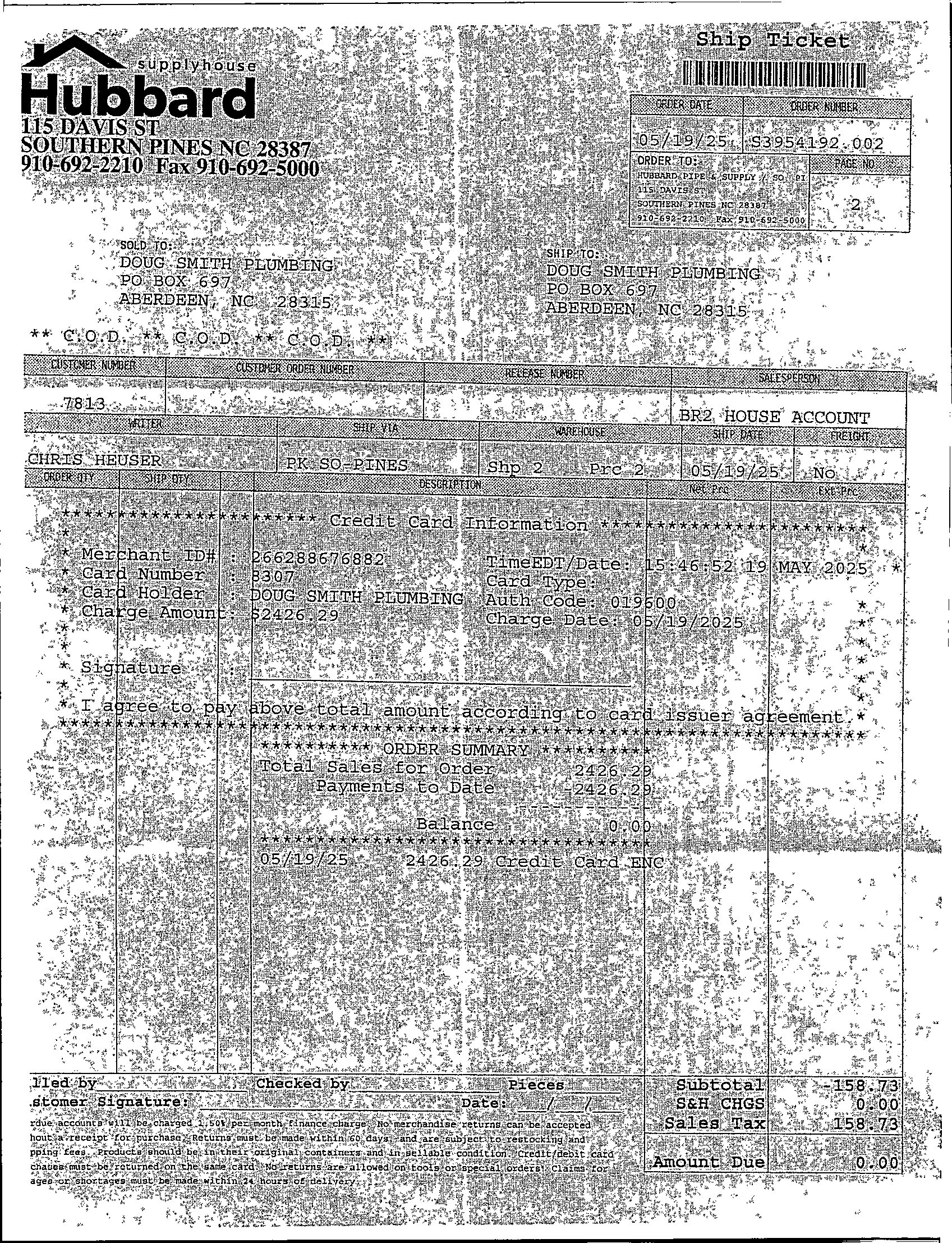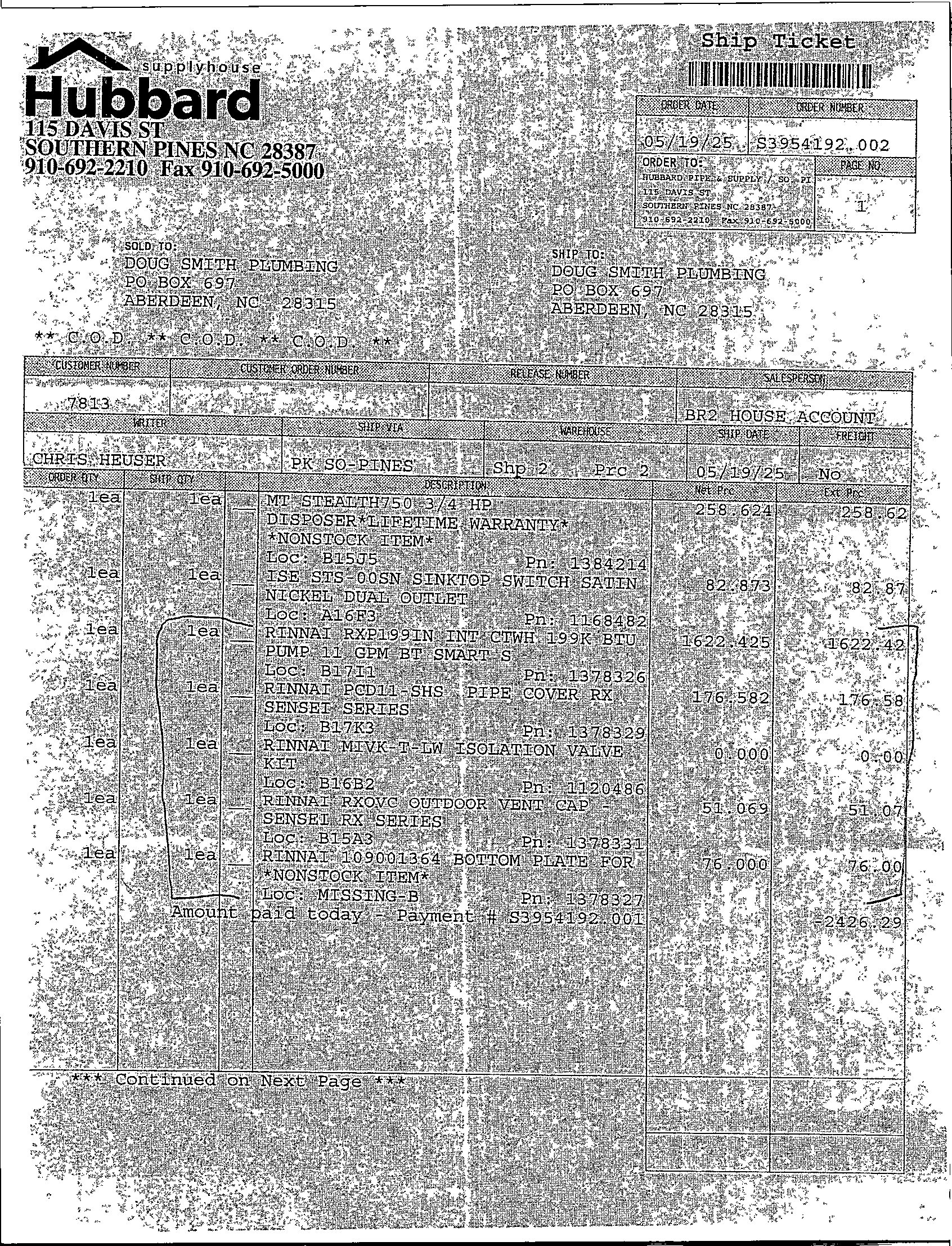 | 2025-81668143 | Bryan Hagler | (910) 277-6726 | 17601 OLD MAXTON RD LAURINBURG, North Carolina 28352 Map It | 17601 OLD MAXTON RD LAURINBURG, North Carolina 28352 Map It | Quality Oil and Gas Company of Laurinburg | (910) 276-6045 | Email hidden; Javascript is required. | Payment Sent | 07/08/2025 | 07/08/2025 | Replacement or New Appliance | 1 | $300.00 | New Installation | Tankless Water Heater ($300.00) | noritz | NRC711-OD | 2024.03-02952 | 07/08/2025 | HAGLER-TANKLESS-WATER-HEATER.pdf | HAGLER-TANKLESS-WATER-HEATER1.pdf | $300.00 | 300 | ||||||||||||||||||||||||||||||||||||||||