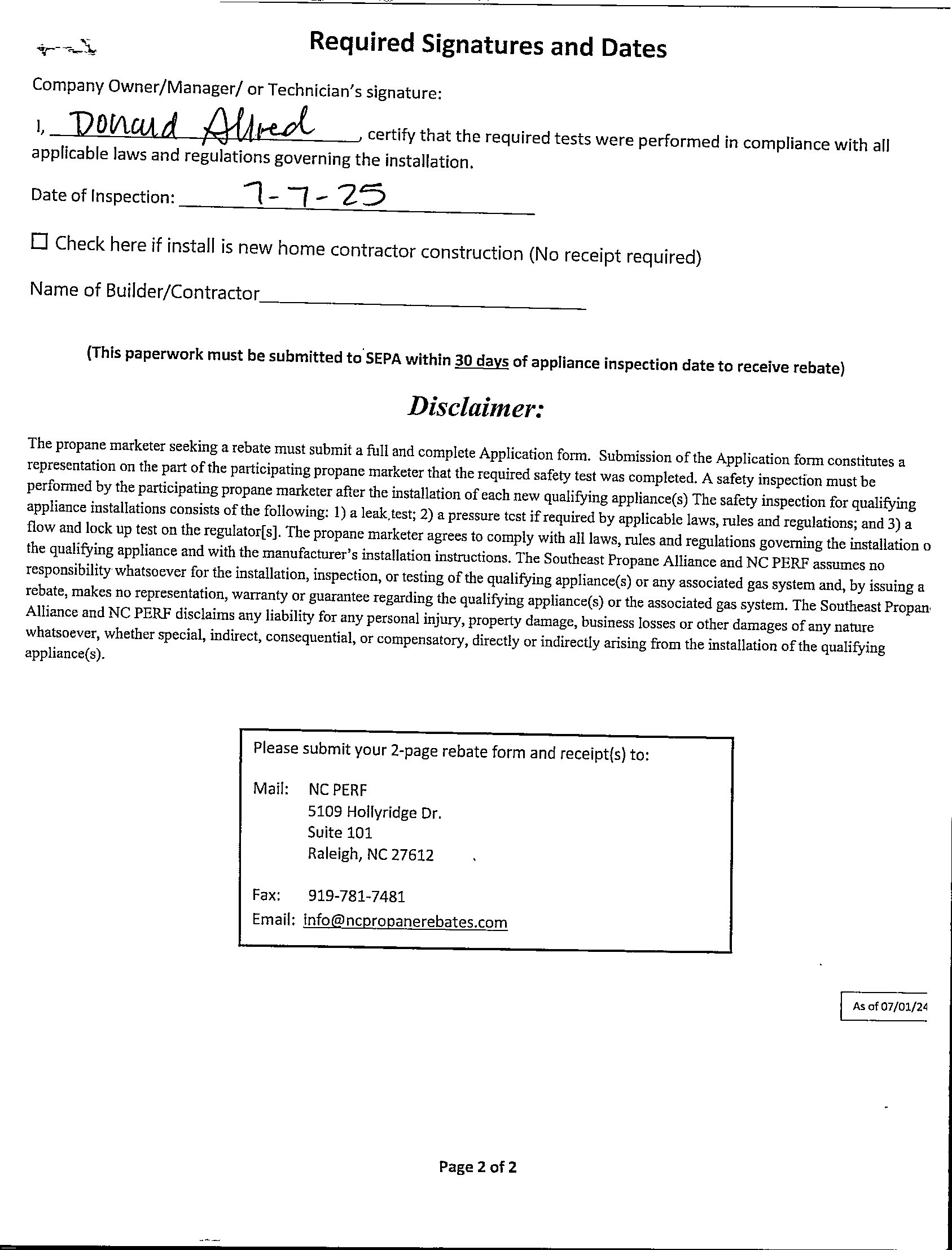 | 2025-25241983 | BRITTANY LEDFORD | Email hidden; Javascript is required. | (919) 413-0882 | 2 Jordan Drive Pittsboro, North Carolina 27312 Map It | 2 Jordan Drive Pittsboro, North Carolina 27312 Map It | Euliss Propane | (336) 622-3055 | Email hidden; Javascript is required. | Payment Sent | 07/09/2025 | 07/09/2025 | Replacement or New Appliance | 1 | $300.00 | Replacement Installation | Tankless Water Heater ($300.00) | RINNAI | REU-NB3237FF-US | TA.BA015135 | 07/09/2025 | RINNAI-RECEIPT.pdf | RINNAI-RECEIPT1.pdf | $300.00 | 300 | |||||||||||||||||||||||||||||||||||||||