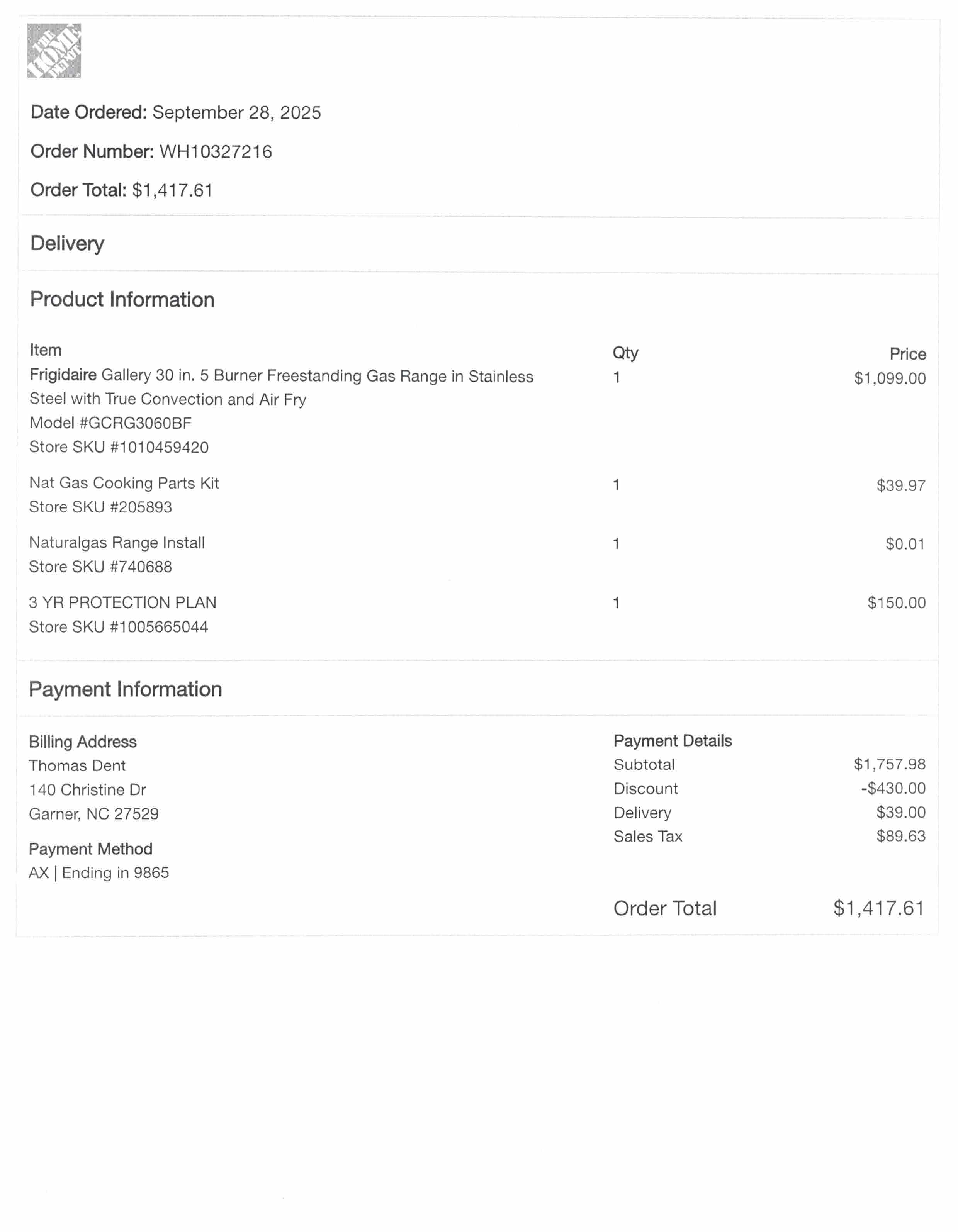 | 2025-14573550 | THOMAS DENT | Email hidden; Javascript is required. | (704) 795-8899 | 171 CHRISTINE DR. GARNER, North Carolina 27529 Map It | 171 CHRISTINE DR. GARNER, North Carolina 27529 Map It | K.B. Johnson Oil & Gas Co. | (919) 552-8474 | Email hidden; Javascript is required. | Payment Sent | 10/17/2025 | 10/17/2025 | Replacement or New Appliance | 1 | $50.00 | Conversion | Cook Top/Range ($50.00) | FRIDGIDAIRE | GCRG3060BFC | VF52450153 | 10/17/2025 | ![]() | ![]() | $50.00 | 50 | |||||||||||||||||||||||||||||||||||||||